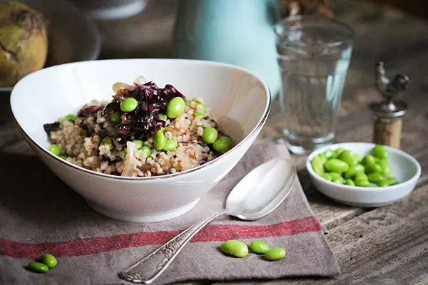 Perlgraupen-Risotto mit karamellisiertem Radicchio und Edamame