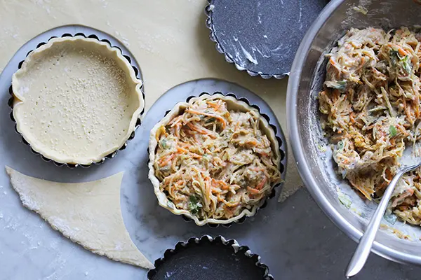 Tipp: Die Füllung kann ganz nach Belieben mit Rüben und Wurzeln zusammen gestellt werden. Es können zum Beispiel mehr Karotten, aber auch Petersilienwurzeln, Teltower Rübchen oder Knollensellerie benutzt werden. Nur auf die Pastinaken würde ich nicht verzichten, da diese den Tartelettes ein unvergleichbares, besonders intensiv zimtiges Aroma geben.