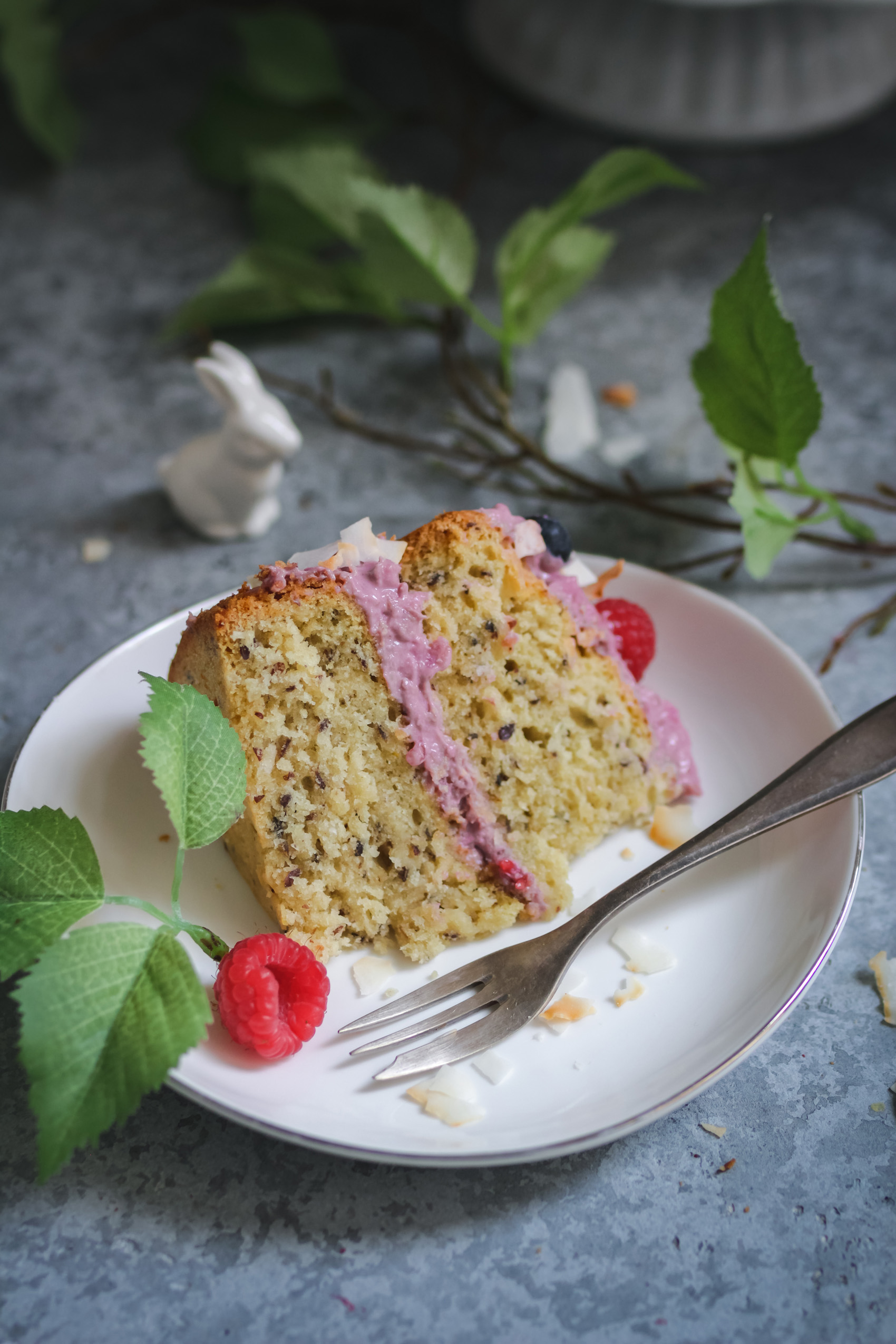 Veganer Frühlingskuchen mit Himbeerquark